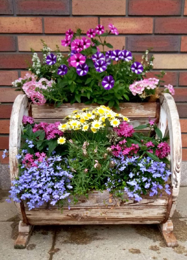 最初の写真は、玄関前に飾ってある木製のプランターです。