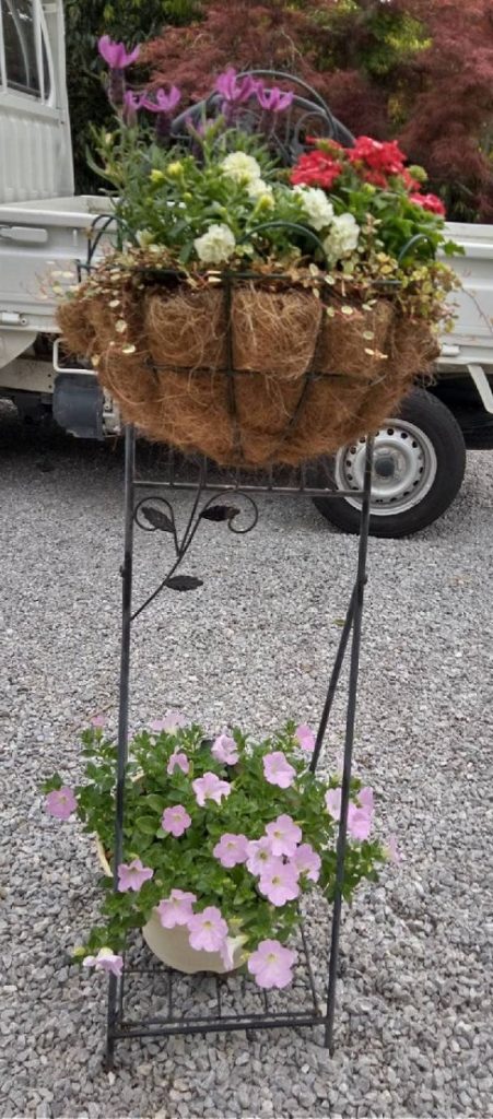 今回は、上段がペチュニア、バーベナ、アンゲロニア、下段がマーガレット、ペンタス、ロベリアを主体にしてみました。どうですか?