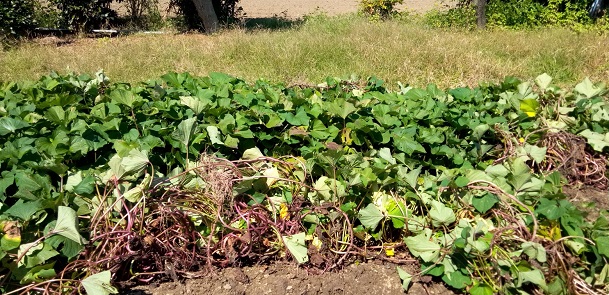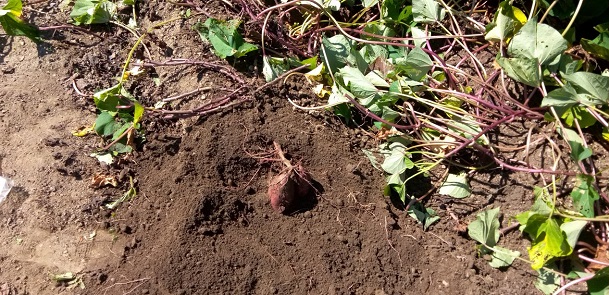 先日試しに1株掘ってみた時、1株から取れたのは大きな芋1本と小さな2本位だったので、他の株はどうだろうか…?