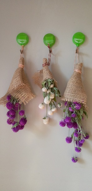 センニチコウも処分する前に花を切ってドライフラワーにし、ミニスワッグを作りました。