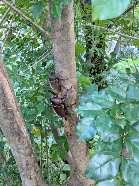 少し調べて見たら、シマトネリコはカブト虫が好む木で、沢山集まるようです。全然知らなかったので、今まで気づきませんでした。
