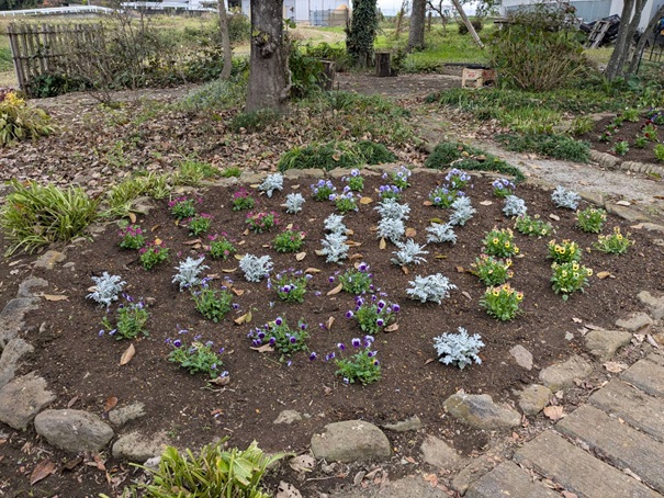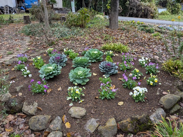 夏花壇を植え替えて、秋冬花壇にチェンジしました。
