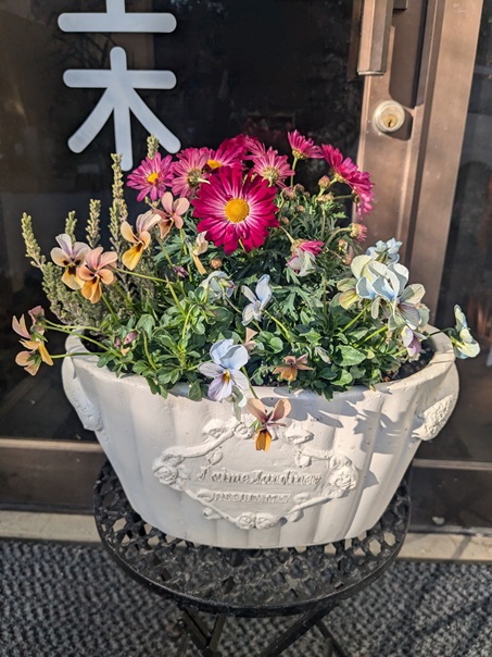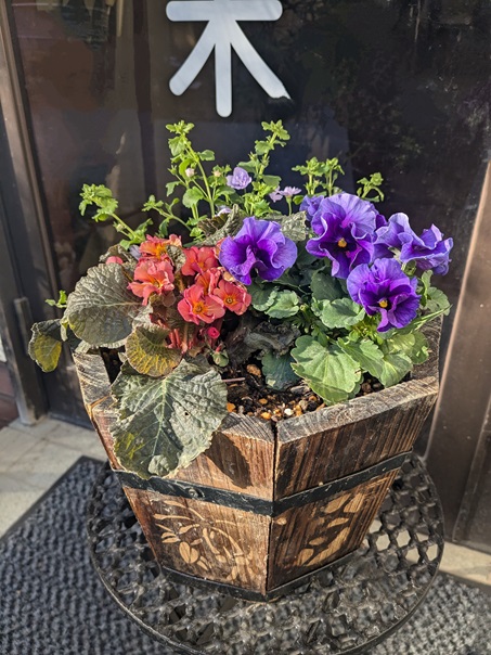 これらの寄せ植えの周りだけ一足早く春が来たようです😅