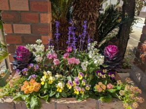 これらの寄せ植えの周りだけ一足早く春が来たようです😅